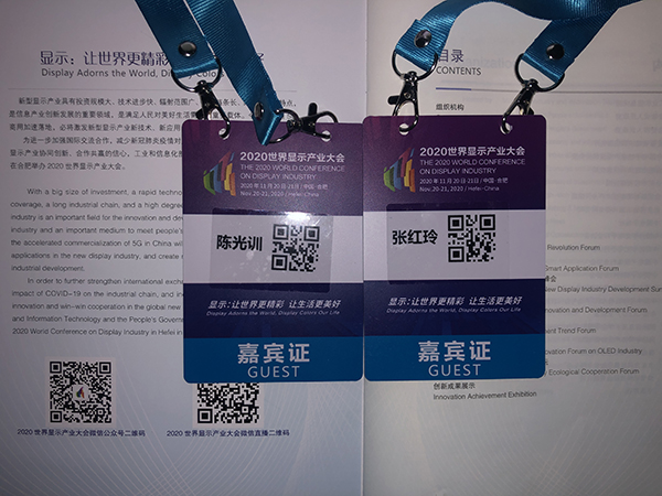 新型顯示產業具有投資規模大、技術進步快、輻射范圍廣、產業鏈條長、集聚度高等特點。是信息產業創新發展的重要領域,是滿足人民對美好生活需要的重要載體。今年,中國5G商用加速落地,必將激發新型顯示產業新技術、新應用,形成產業發展新活力、新動能。為進一步加強國際交流合作,減少新冠肺炎疫情對產業鏈的沖擊和影響,增強全球新型顯示產業協同創新、合作共贏的信心,工業和信息化部、安徽省人民政府于2020年11月在合肥舉辦2020世界顯示產業大會。安徽迅博智能公司總經理陳光訓先生及張紅玲女士參加了本次2020世界現實產業大會.